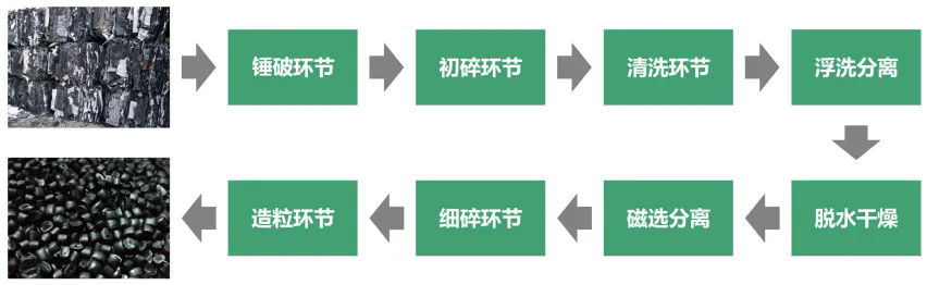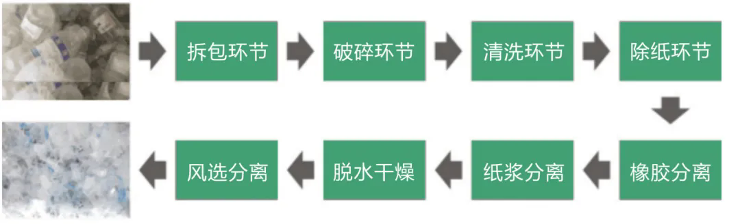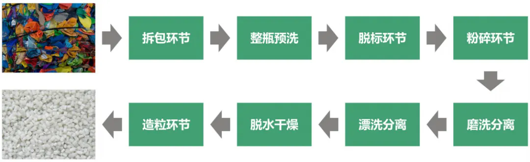 整套設(shè)備從拆包到破碎-清洗-除紙-除橡膠-干燥-分離瓶嘴料均可全自動化流水生產(chǎn)。生產(chǎn)出來的成品顆粒基本達到了新料的品質(zhì),廣泛用于注塑擠出、加工造粒等領(lǐng)域。