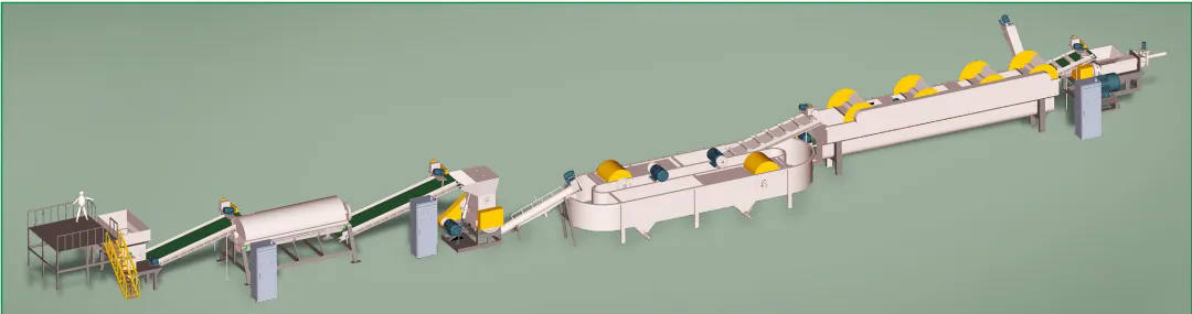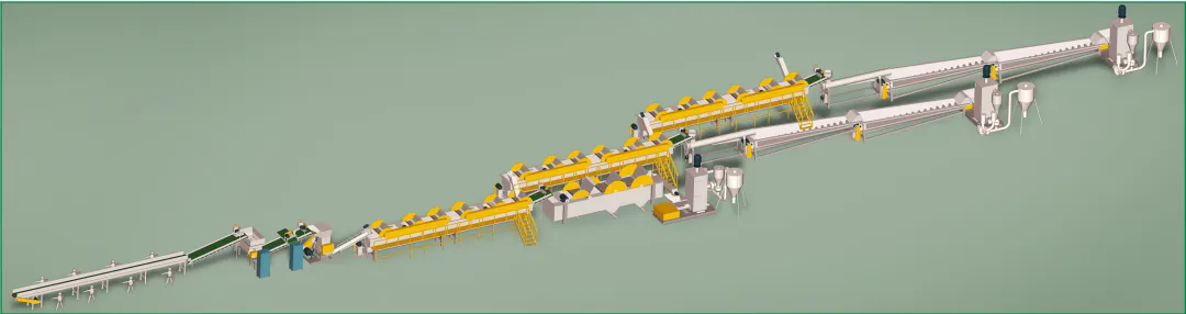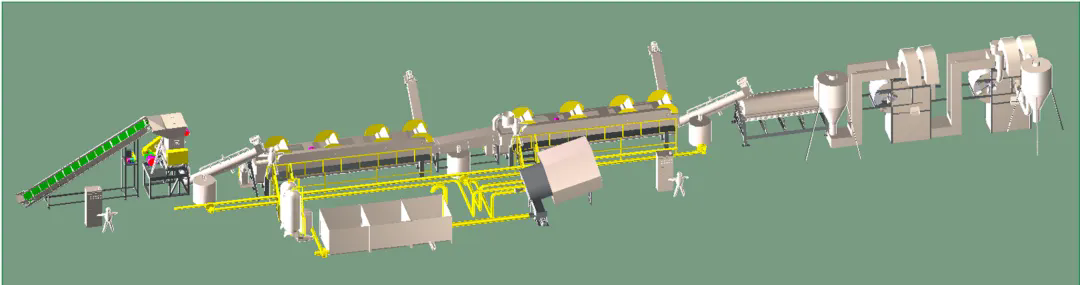 柯達機械制造各類型再生塑料全套破碎清洗分離生產(chǎn)線,與Toplun(菲律賓)、KSI(馬來西亞)、泉源塑膠(印尼)、新華泰(泰國)、海鹽海利等PET再生利用大型生產(chǎn)廠家合作,大部分客戶清洗的PET切片均對接Adidas,Nike等世界知名企業(yè),柯達機械PET工藝略異于市場生產(chǎn)線,多出市場上的冷熱預(yù)洗及堿洗后增加酸性中和清洗,在整個工藝中務(wù)求減少PET切片的刮痕損傷,降低粉末損耗率,快速酸性中和保固PET成品料粘度。每個工序點都為生產(chǎn)出高粘度,低損耗PET成品而設(shè)計。